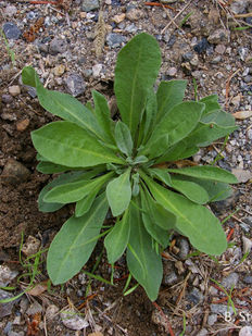 The whole plant is covered in star-shaped hairs that are rough to touch, with grey leaves that clasp closely to the stem.